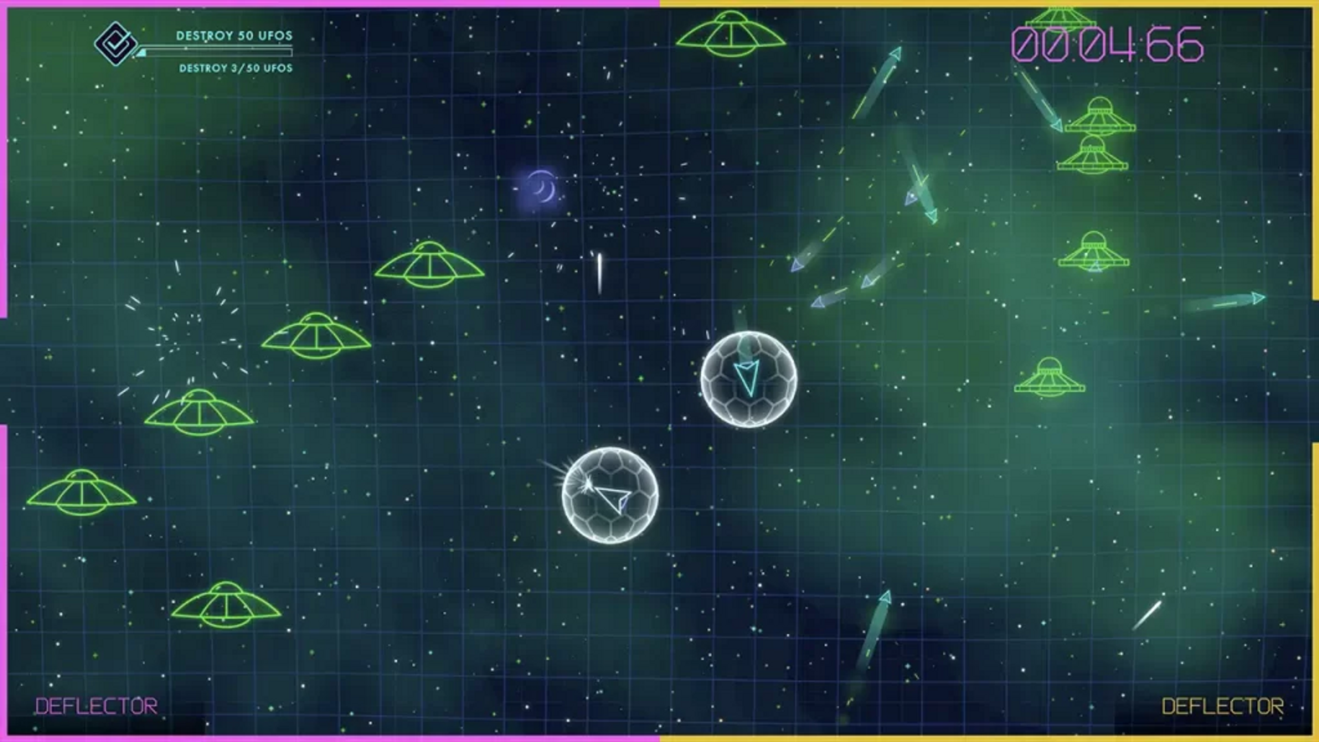 Potpuno nova kolekcija power-upova — uključujući rafalne pucnjeve, rail gunove, reflektirajuće štitove i još mnogo toga — pomaže igračima da se obrane od rasprskavajućih asteroida i agresivnih NLO-a. Co-op način omogućuje igru s prijateljem i dodatno pojačava intenzitet dok se pokušavate koordinirati i preživjeti.